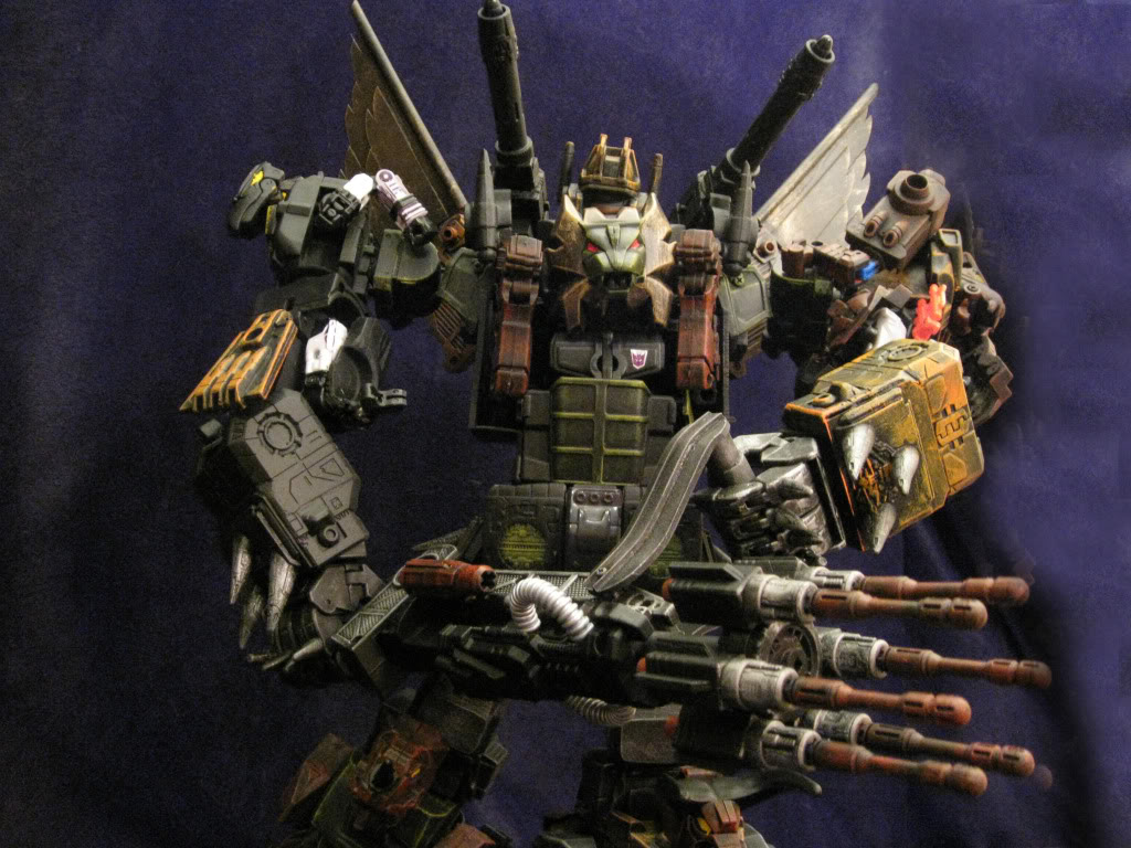 Thanks go out to ThyVipera for Ideas and Parts, Megacyber and YourReflection for ideas as well, the rest of the Radicons for inspiration, and the wife for going away for the weekend. It's sad to say but this guy took about 26 hours already which is well above what I thought it would take. 1 Unicron, 2 smokescreens, 3 sideswipes and a predaking KO was killed in the making of him so enjoy some pics. Note: Some pics may be old [I fixed some problems since I took them(i.e. long neck on razorclaw)].